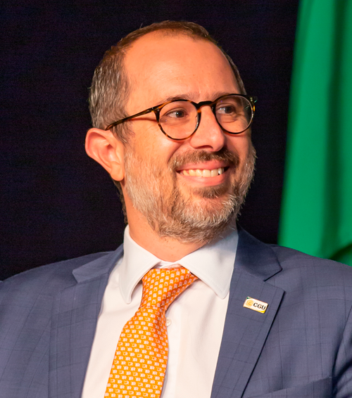 Marcelo Pontes Vianna, secretário de Integridade Privada; Claudio Torquato da Silva, secretário-executivo adjunto; Vânia Vieira, secretária-executiva; ministro da CGU, Vinícius Marques de Carvalho; Ariana Frances, ouvidora-geral da União; e Ana Tulia de Macedo, secretária de Acesso à Informação
