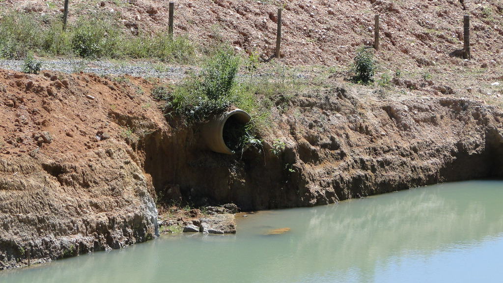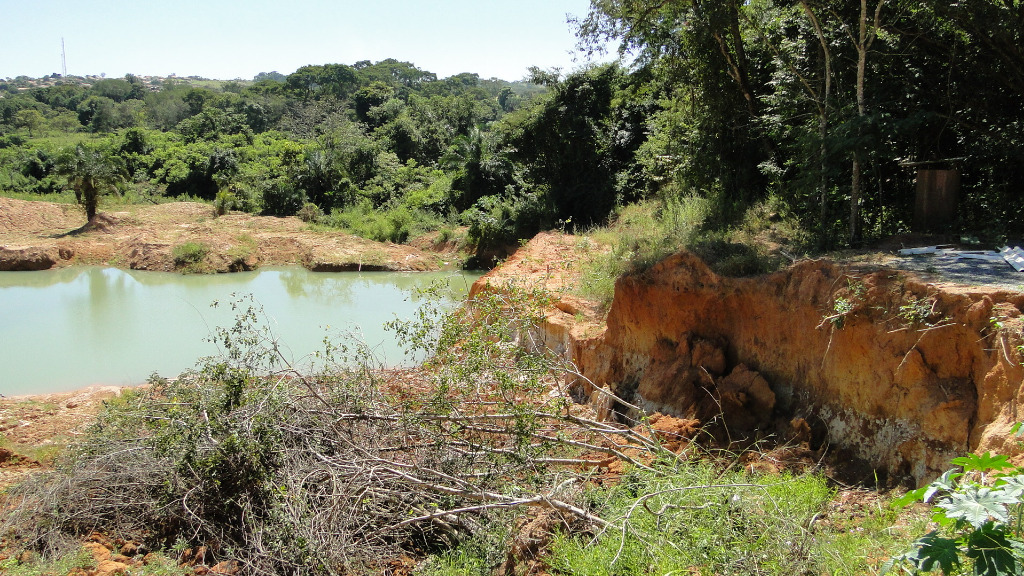 Estação elevatória Gameleira 1, no Sistema Meia Ponte. Escavação encontra-se abandonada e com um avançado processo erosivo, o que representa um expressivo passivo ambiental a ser solucionado antes do início da execução das obras