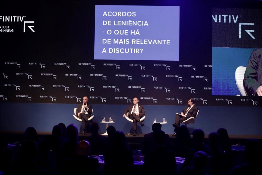 Ministro da AGU, André Luiz Mendonça, secretário de Combate à Corrupção, João Carlos Figueiredo, e o moderador José Leonelio de Souza, da PLD Consultoria