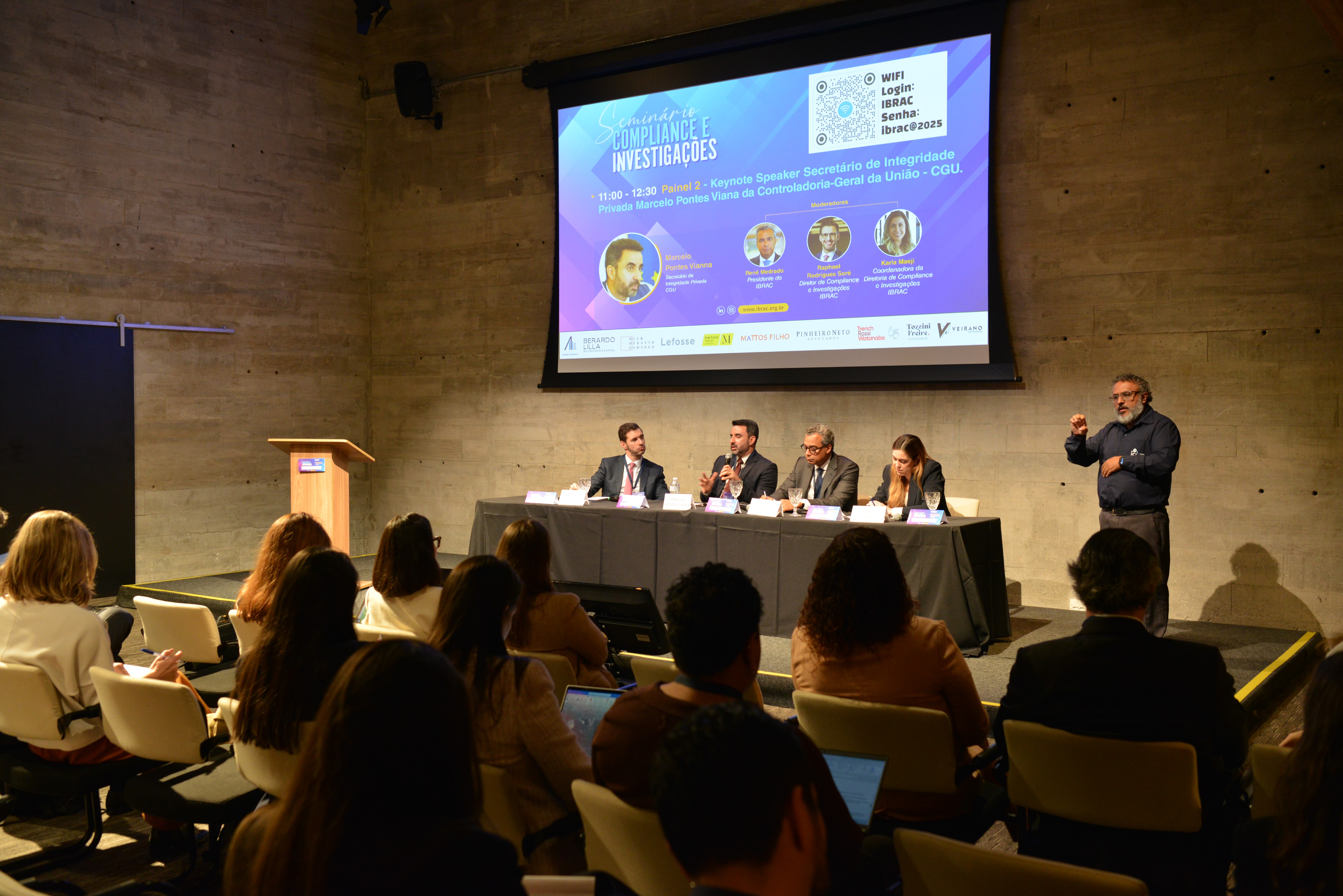 Painel 2 - Marcelo Pontes Vianna, Secretário de Integridade Privada – CGU, Raphael Rodrigues Soré, Diretor de Compliance e Investigações – IBRAC, Karla Maeji, Coordenadora da Diretoria de Compliance e Investigações – IBRAC, Renê Medrado, Presidente – IBRAC