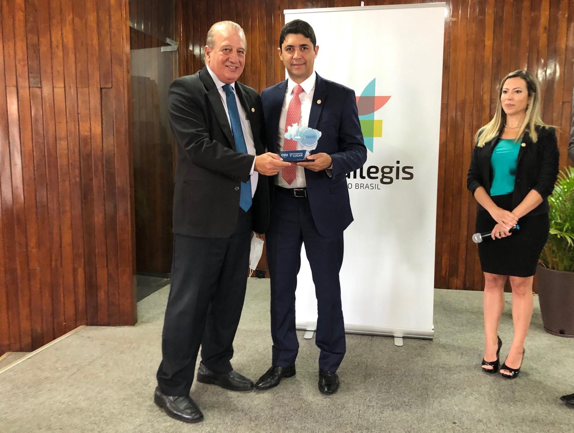 Em nome da Controladoria, o ministro Wagner Rosário recebeu o troféu das mãos do ministro Augusto Nardes, do Tribunal de Contas da União (TCU)
