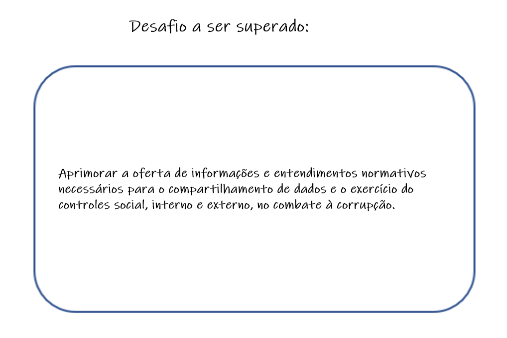 O desafio escolhido: Aprimorar a oferta de informações e entendimentos normativos necessários para o compartilhamento de dados e o exercício dos controles social, interno e externo, no combate à corrupção.