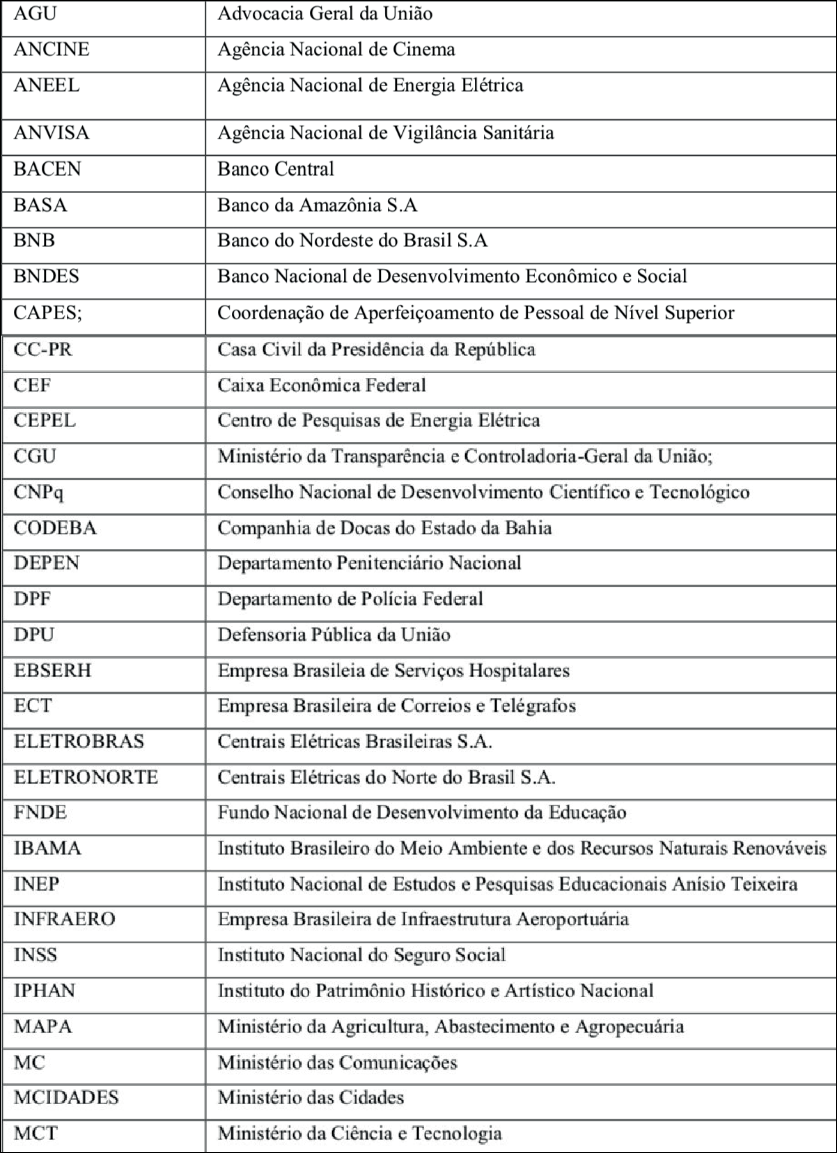 [xii] Atualmente, apresenta-se esta configuração interna de funções. No entanto, em termos de status, a CGU após alterações, foi desvinculada da Presidência, sendo enquadrada como os demais ministérios.