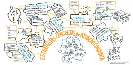 Nas oficinas realizadas, foram delineadas formas cooperativas de trabalho entre as instituições, que pudessem resultar em uma rede de densidade popular, aproximando a sociedade civil das atividades do Estado, utilizando ferramentas inovadoras, com a participação de múltiplos atores.