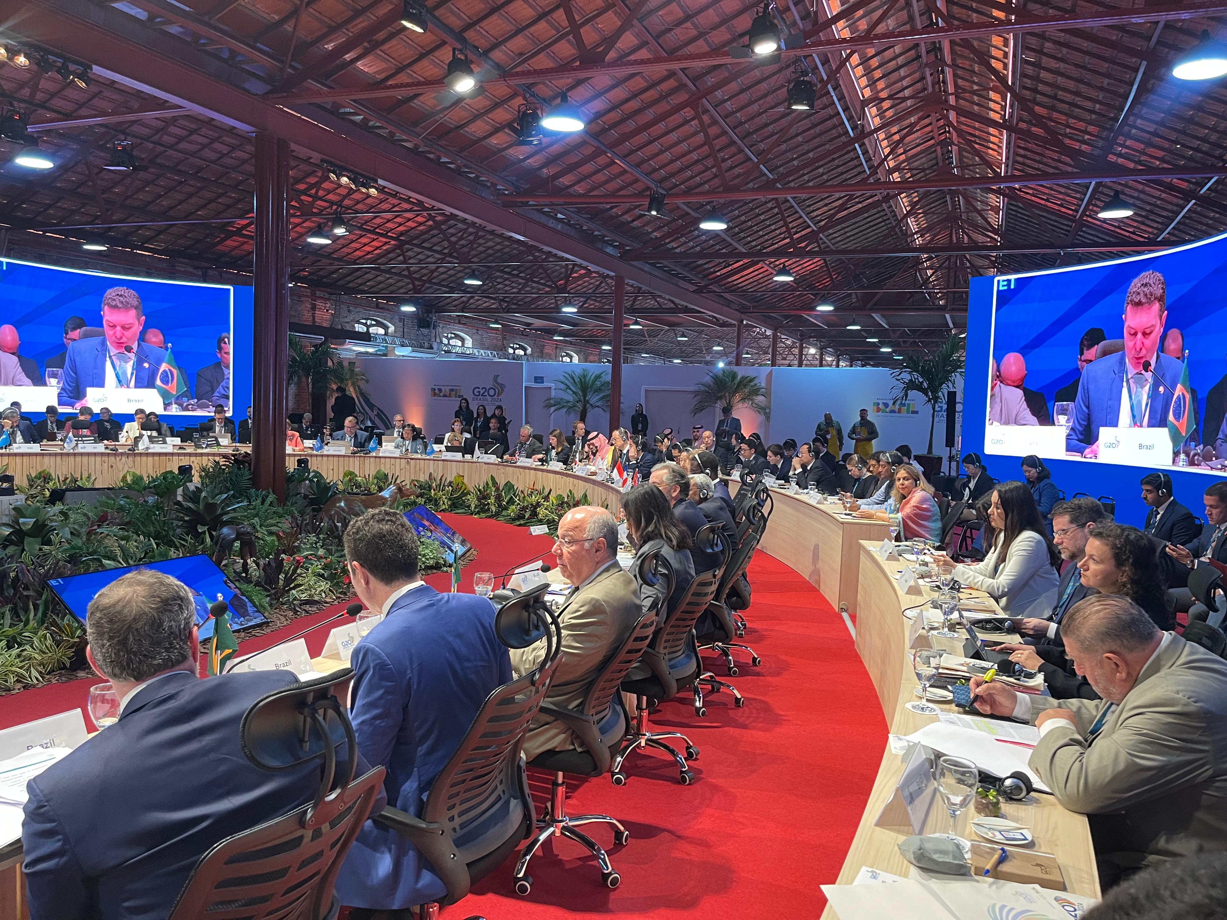 A reunião teve a condução do Ministro das Relações Exteriores, Mauro Vieira, e a presença da Ministra do Planejamento e Orçamento, Simone Tebet, além dos representantes das delegações dos países membros do G20.