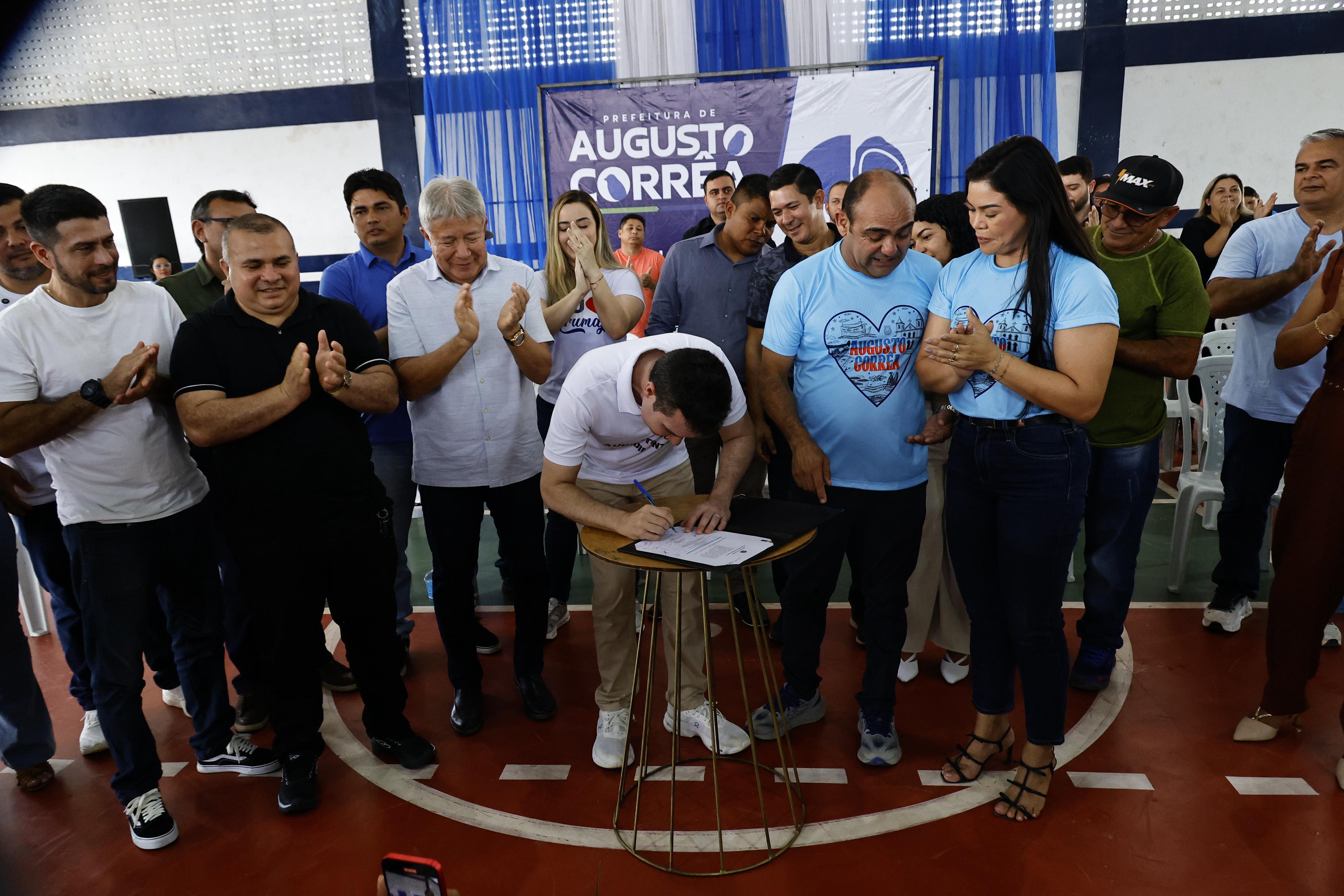 - Cerimônia de assinatura de ordem de serviço de pavimentação em Augusto Corrêa. Foto: Marcelo Camará/MCid.