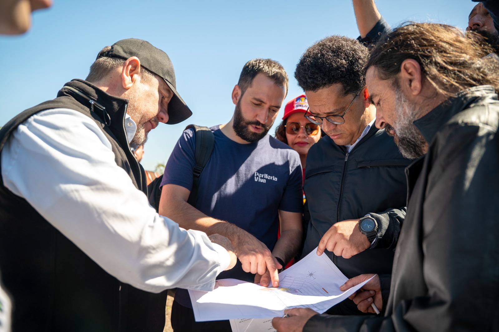 A primeira parada foi na Ocupação Stegleider, em São Leopoldo, para inaugurar o Porto Territorial Periferia Viva que marca o início das obras para as quase 3 mil famílias da comunidade, atingida pelas enchentes de 2024. Serão destinados R$ 138 milhões para intervenções de infraestrutura, recuperação ambiental e regularização fundiária.