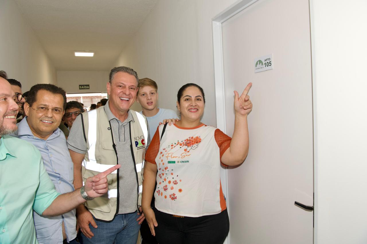 - Ao lado do ministro Carlos Fávaro, Gilmara recebeu as chaves da sua nova casa. Crédito: Caroline De Vita.