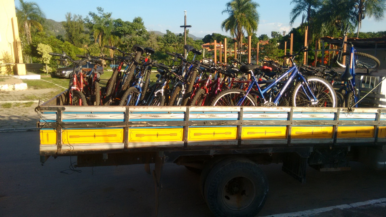 - As bicicletas doadas pelo "Doe Bicicletas", transportadas por caminhão. Crédito: Arquivo/Rodas da Paz.