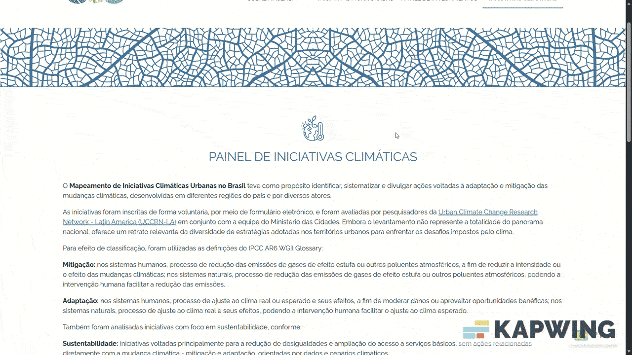 “O mapeamento de iniciativas climáticas urbanas de diferentes governos, organizações e empresas demonstra o poder transformador das ações locais, destaca a diretora de Sustentabilidade e Projetos Especiais do Ministério das Cidades, Alice Carvalho. “A consolidação dessas experiências permite que gestores públicos visualizem o estágio das ações locais, promovam cooperação entre cidades e direcionem recursos para ações com maior potencial de impacto, além de informar a população em geral sobre seus benefícios.”