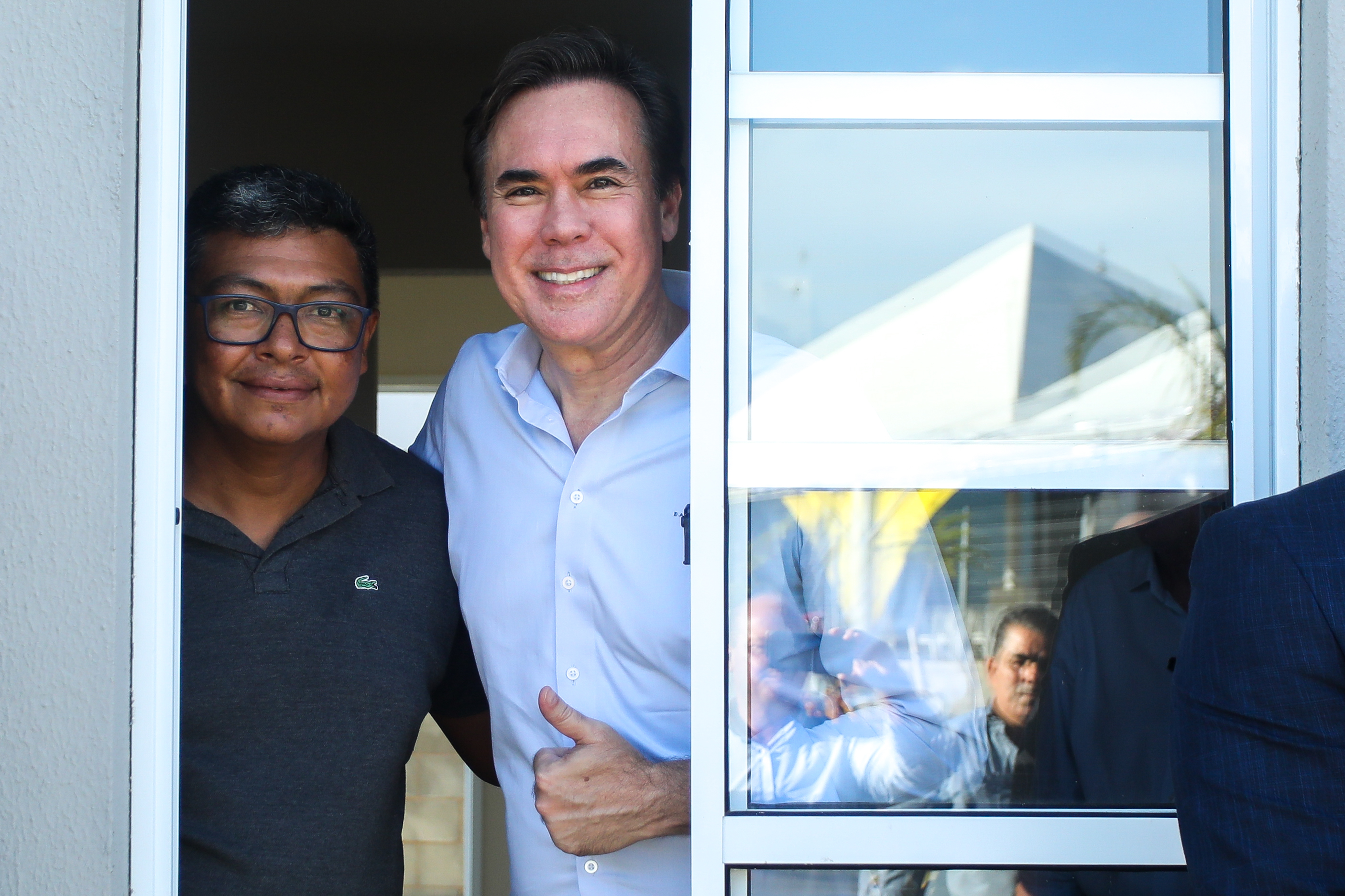 - O secretário Nacional de Mobilidade Urbana, Denis Andia (direita), ao lado de um dos beneficiários. Crédito: Construtora Pacaembu/Divulgação.