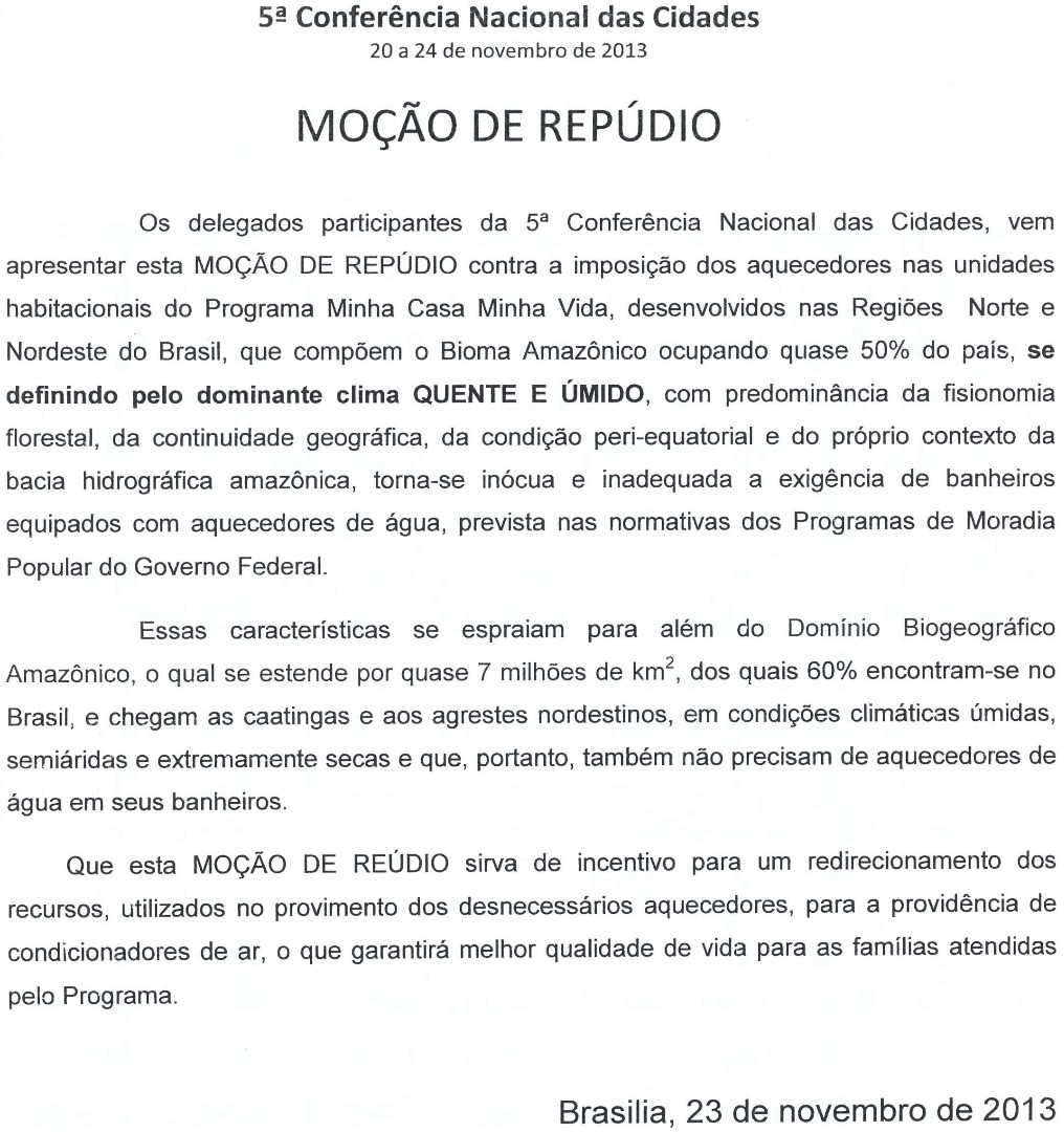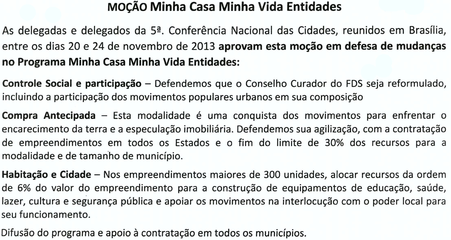 Texto aprovado na plenária da 5ª Conferência Nacional das Cidades