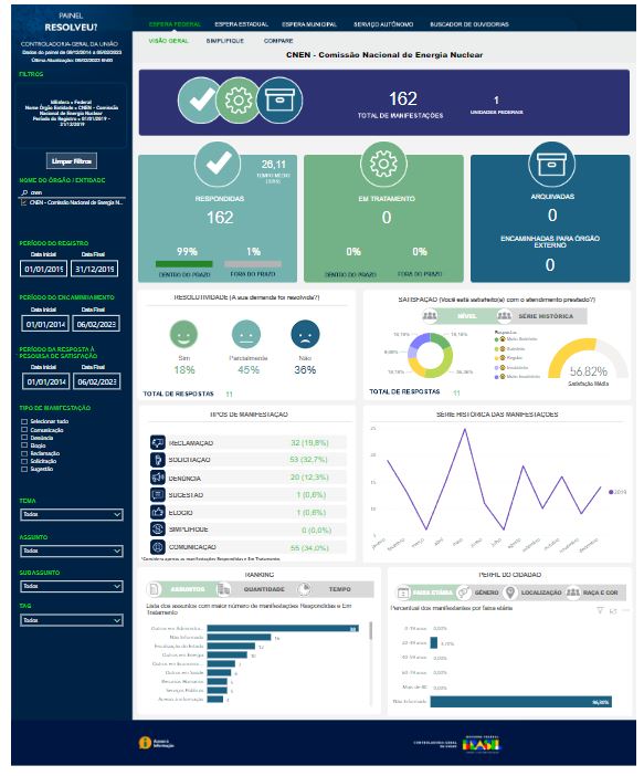 As principais atribuições da Ouvidoria CNEN são: