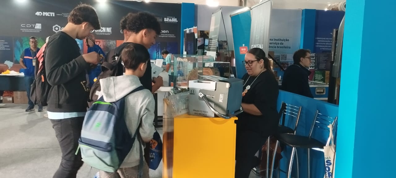 No estande CNEN, os estudantes conhecem um pouco mais sobre a ciência nuclear. Foto: Claudio Braz.