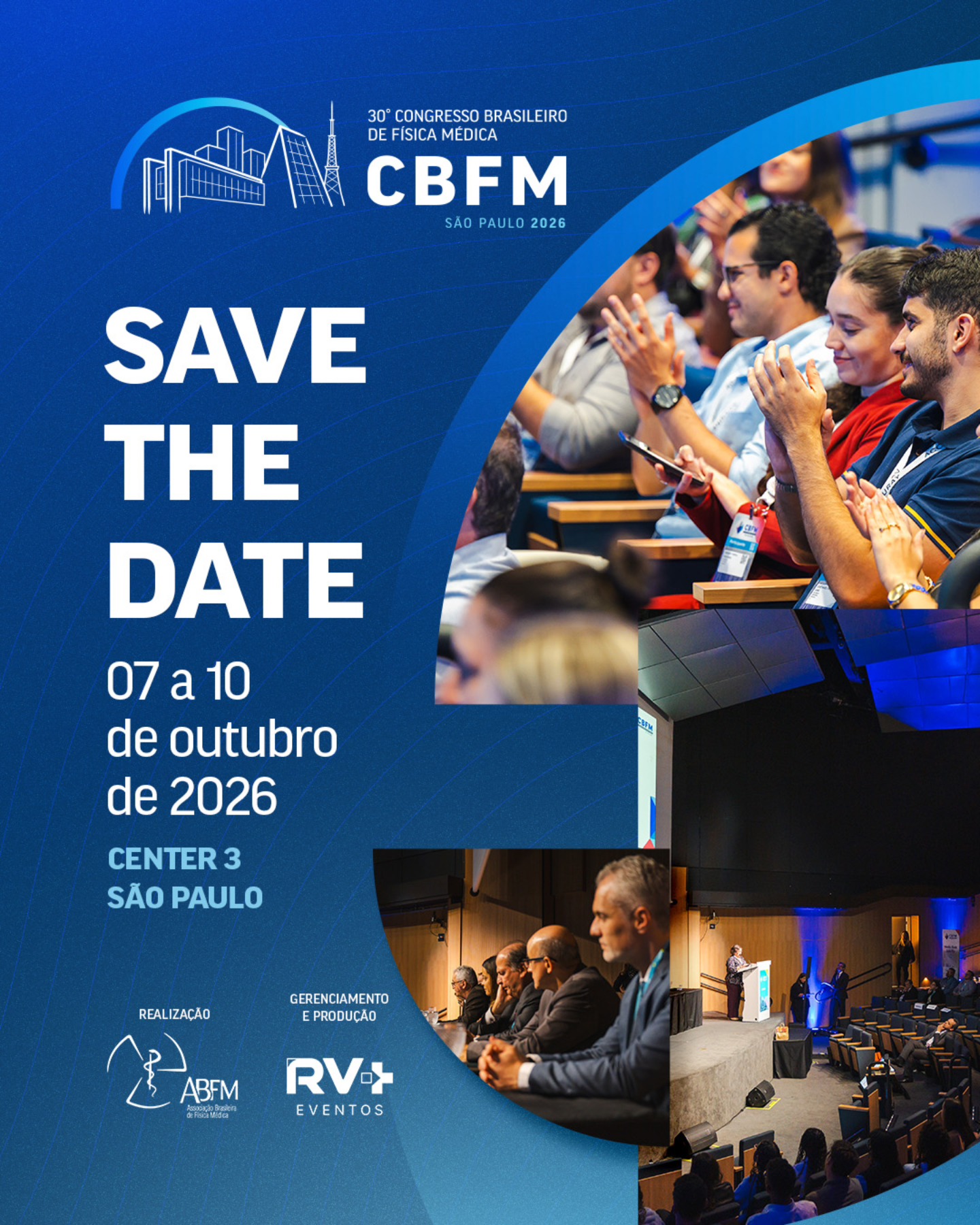 De 7 a 10 de outubro de 2026, em São Paulo (SP), será realizada a 30ª edição do Congresso Brasileiro de Física Médica, principal encontro nacional voltado para a integração entre ciência, tecnologia e prática de física médica. O prazo para submissão de trabalhos é o dia 20 de abril de 2026. O evento reunirá especialistas do Brasil e do exterior para debater avanços e tendências em radioterapia, radiodiagnóstico, medicina nuclear e radiações não ionizantes.