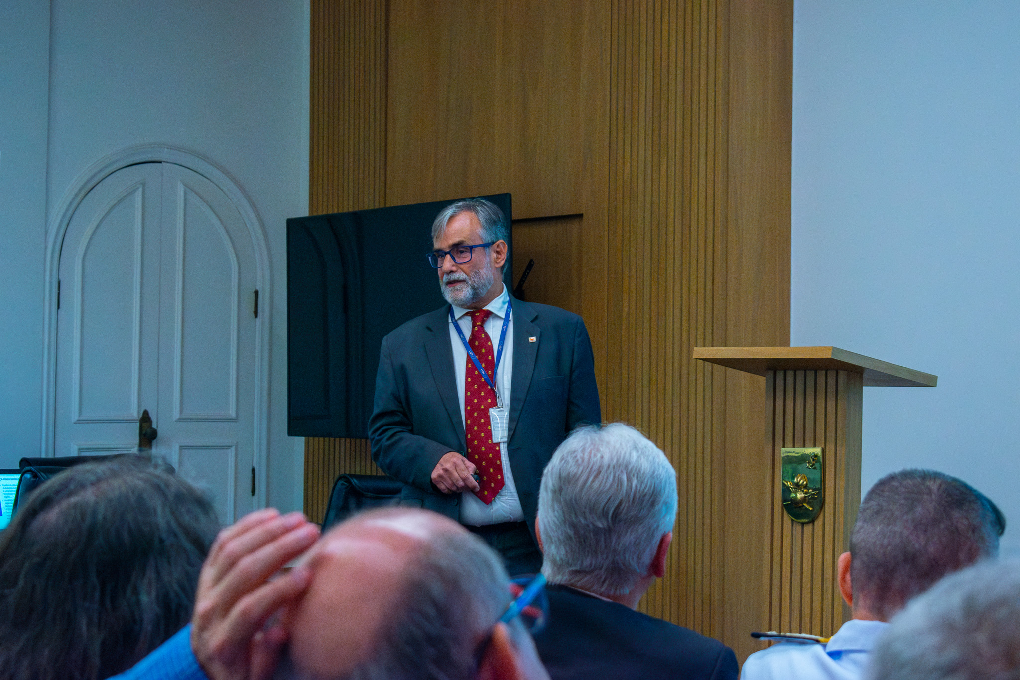Antes da cerimônia de assinatura do protocolo de intenções, o diretor do IEN/CNEN conduziu uma breve apresentação sobre o Centresf aos almirantes e comandantes presentes nesse encontro. Cristóvão Marinho destacou que esse projeto foi contemplado no edital da Finep voltado a centros nacionais de infraestrutura científica de pesquisa e tecnológica de caráter temático, nas áreas de transição energética, transição ecológica, transformação digital, saúde e defesa.