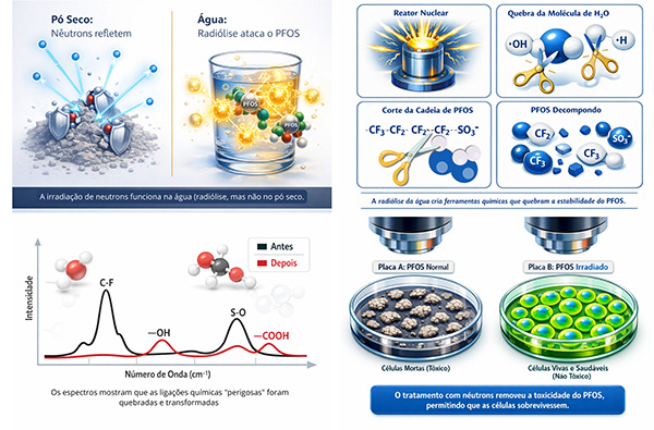 Pesquisadores do Laboratório de Nanorradiofármacos do Instituto de Engenharia Nuclear (IEN/CNEN) acabam de publicar um trabalho científico inédito sobre os efeitos da irradiação com nêutrons para remediar um dos contaminantes ambientais mais persistentes e preocupantes da atualidade – o ácido perfluorooctanossulfônico (PFOS). Classificado entre os chamados "poluentes eternos" (do inglês, forever chemicals), ele é extremamente durável e resiste à degradação ambiental, podendo ser mais resistente do que o plástico, que leva anos para se degradar.