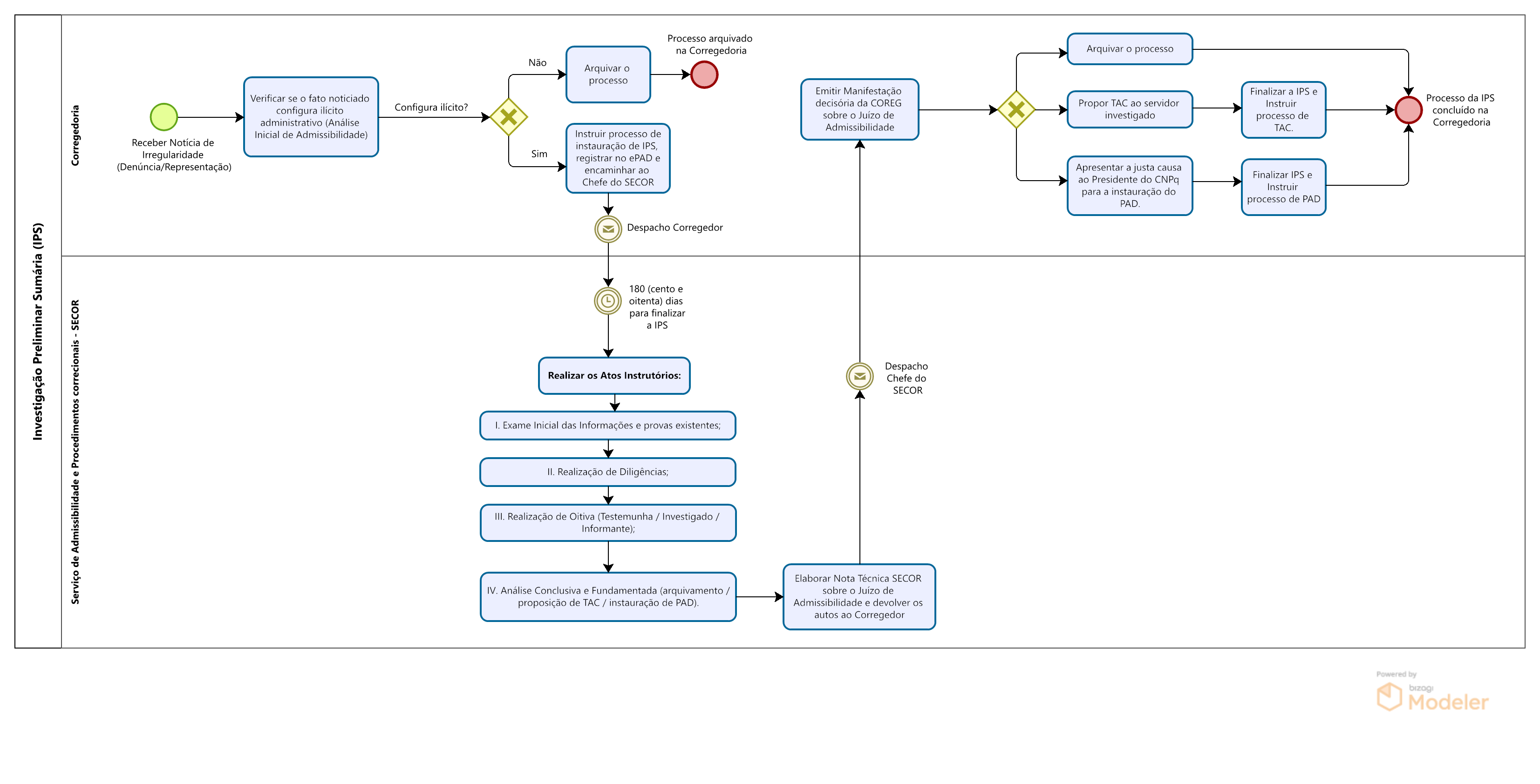 - Legenda: IP - Investigação Preliminar de Ente Privado; IPS - Investigação Preliminar Sumária; SINVE - Sindicância Investigativa; SINPA - Sindicância Patrimonial; PAR - Processo Administrativo de Responsabilização de Ente Privado; SINAC - Sindicância Acusatória; PAD - Processo Administrativo Disciplinar; PAD - Processo Administrativo Disciplinar - Rito Sumário.