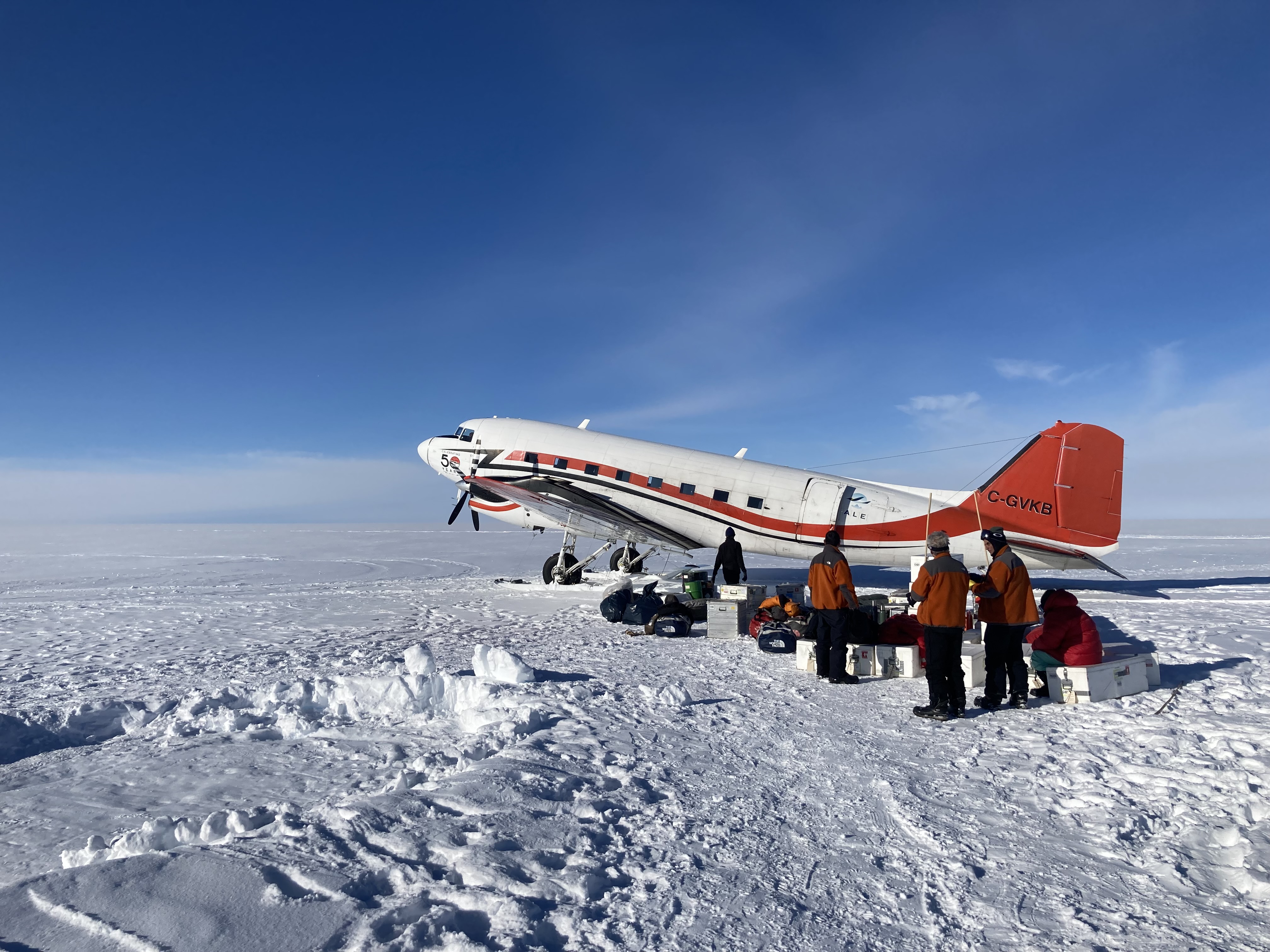 Retorno ao acampamento base no avião DC3 Bassler. Além da equipe, são transportados equipamentos e os valiosos 98 m de testemunhos de gelo. Foto: Divulgação/ Centro Polar e Climático da Universidade Federal do Rio Grande do Sul