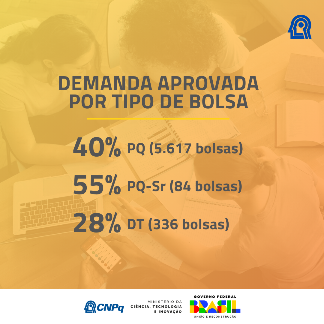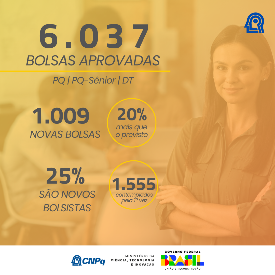 Foram aprovados, ao todo, 6.037 bolsistas: 5.617 em Produtividade em Pesquisa (PQ, correspondente a 40% da demanda); 84 em Produtividade em Pesquisa Senior (PQ-Sr, 55% da demanda); e 336 em Desenvolvimento Tecnológico e Extensão Inovadora (28% da demanda).