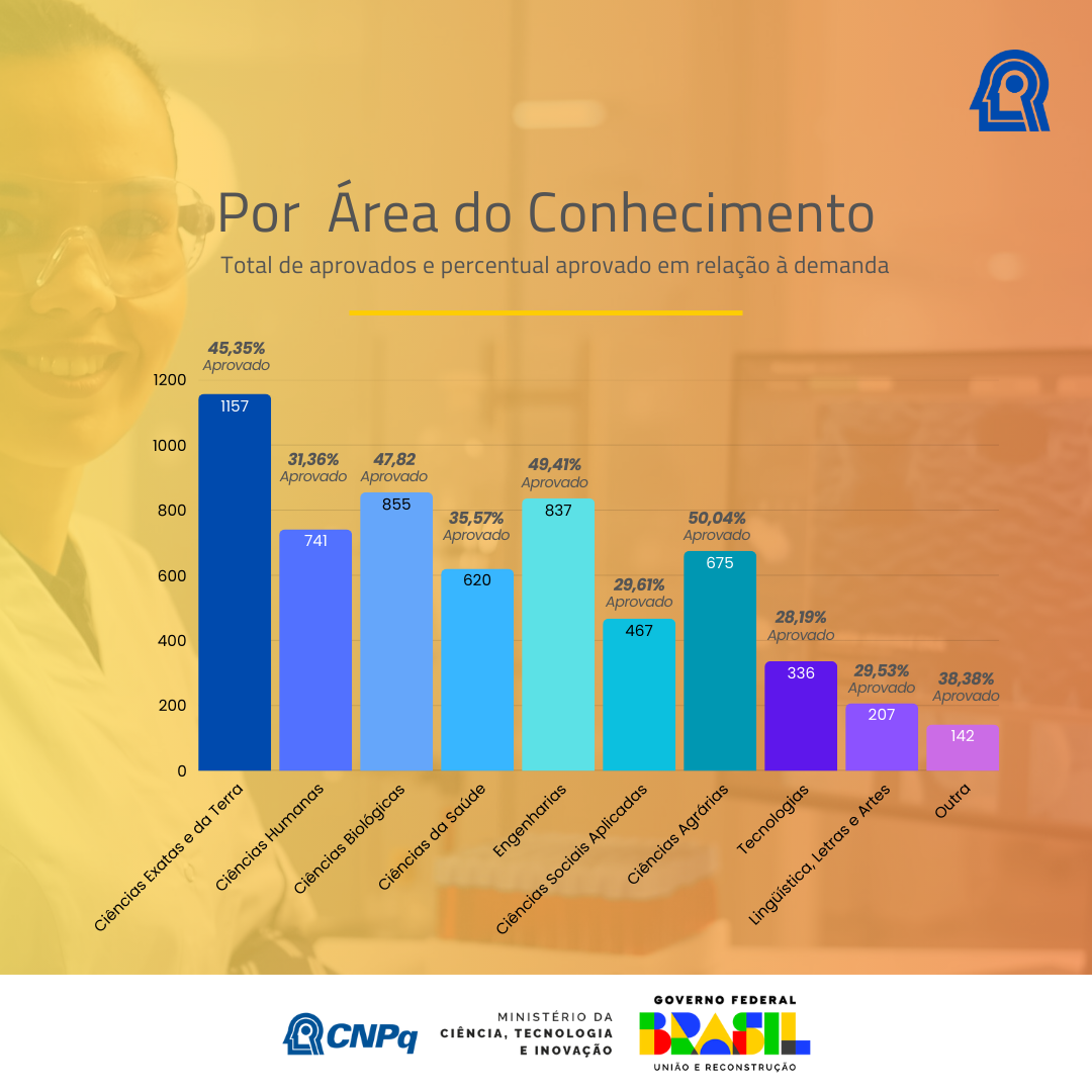 Entre as áreas do conhecimento, destacam-se as ciências exatas e da terra (1.157 bolsas), as engenharias (837), as biológicas (855), as humanas (741) e as agrárias (675), entre as contempladas em todas as áreas.