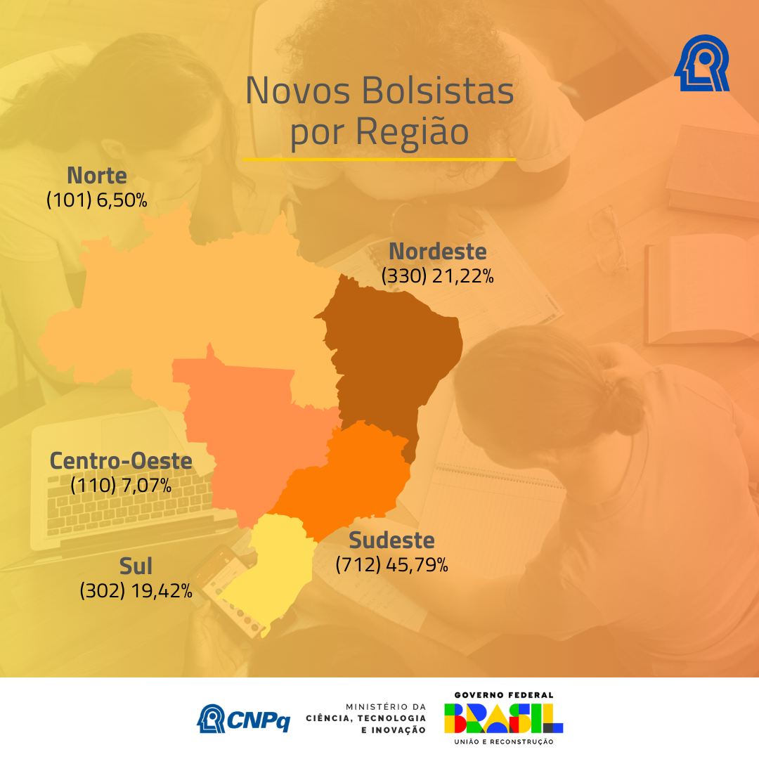 As bolsas de produtividade alcançam todas as regiões do país, com 52,5% destinadas ao Sudeste, 19% ao Sul, 17% ao Nordeste, 7% ao Centro-Oeste e 4% ao Norte. Entre os 1.555 novos bolsistas, 45% são do Sudeste, 19% do Sul, 21% do Nordeste, 7% do Centro-Oeste e 6,5% do Norte - perfazendo 33% para N, NE e CO, acima da meta de 30% para essas regiões.