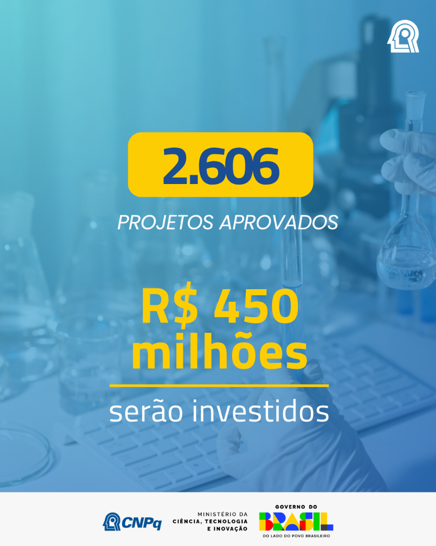 Por meio de uma de suas mais tradicionais chamadas, realizada desde 2001, o Conselho Nacional de Desenvolvimento Científico e Tecnológico (CNPq) investirá um total de R$ 450 milhões – 50% a mais em relação à chamada anterior - , sendo R$ 320 milhões em recursos próprios (R$ 20 milhões a mais que na chamada anterior), e R$ 130 milhões aportados pelo Fundo Nacional de Desenvolvimento Científico e Tecnológico (FNDCT), gerido pelo Ministério da Ciência, Tecnologia e Inovação (MCTI).