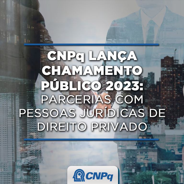O Conselho Nacional de Desenvolvimento Científico e Tecnológico (CNPq) lança o Chamamento Público 2023 com a finalidade de receber propostas de empresas que desejam aplicar seus recursos com eficiência e efetividade em ações e projetos de pesquisa científica, tecnológica e de inovação por meio de parcerias nas seguintes linhas de interesse: