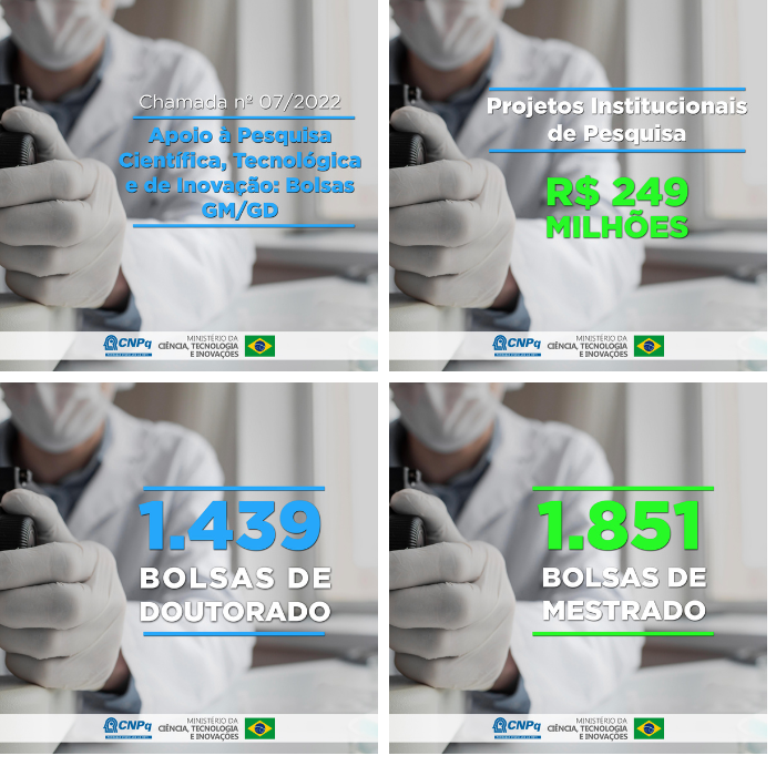 O Conselho Nacional de Desenvolvimento Científico e Tecnológico (CNPq) divulga o resultado final da Chamada nº 07/2022 - Apoio à Pesquisa Científica, Tecnológica e de Inovação: Bolsas de Mestrado e Doutorado - Ciclo 2022.