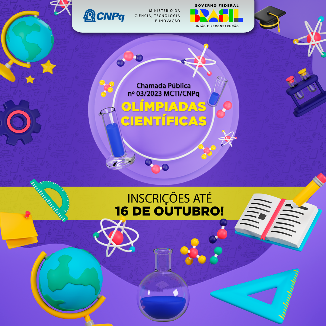 Está aberta a chamada de apoio à realização de Olimpíadas Científicas em todo o país. A iniciativa do Conselho Nacional de Desenvolvimento Científico e Tecnológico (CNPq), em parceria com o Ministério da Ciência, Tecnologia e Inovação (MCTI), visa apoiar propostas em âmbito regional, nacional e internacional, em todas as áreas do conhecimento.