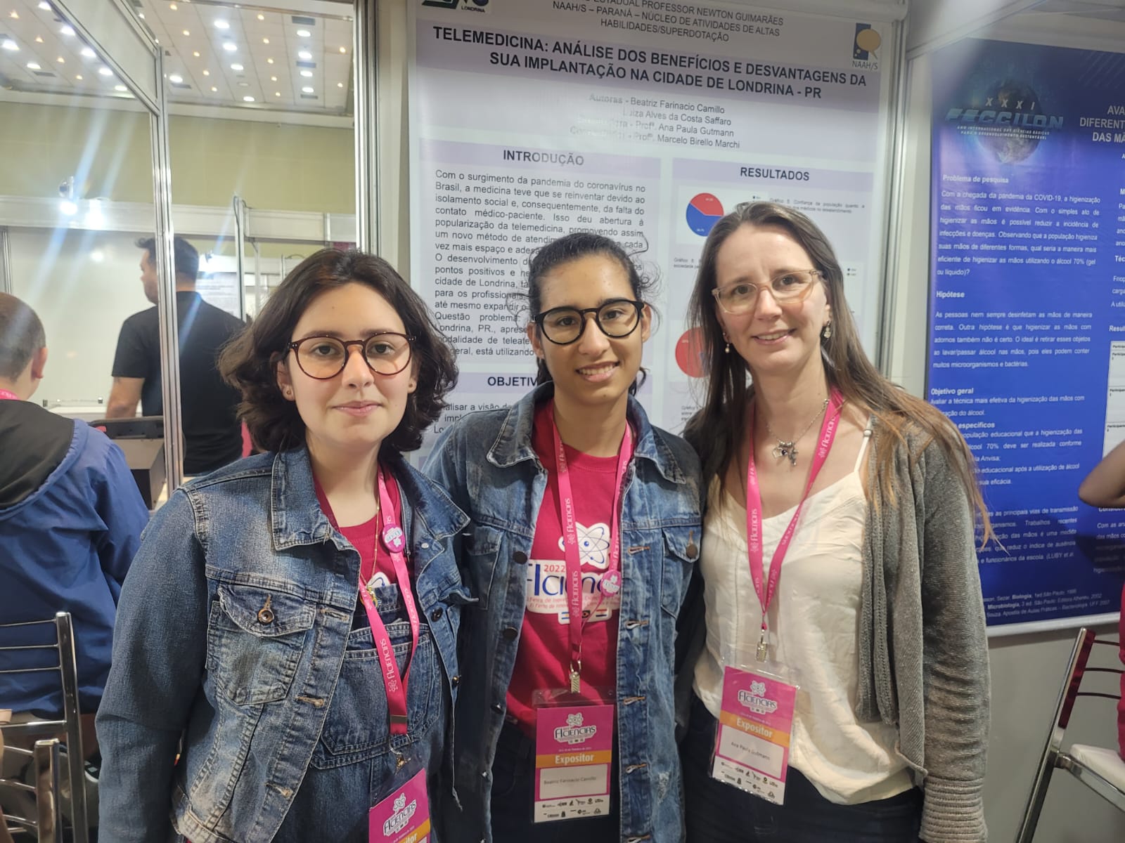 Profª Ana Paula Vidotti com as bolsistas Kamilly da Silva e Isabella Baptista.