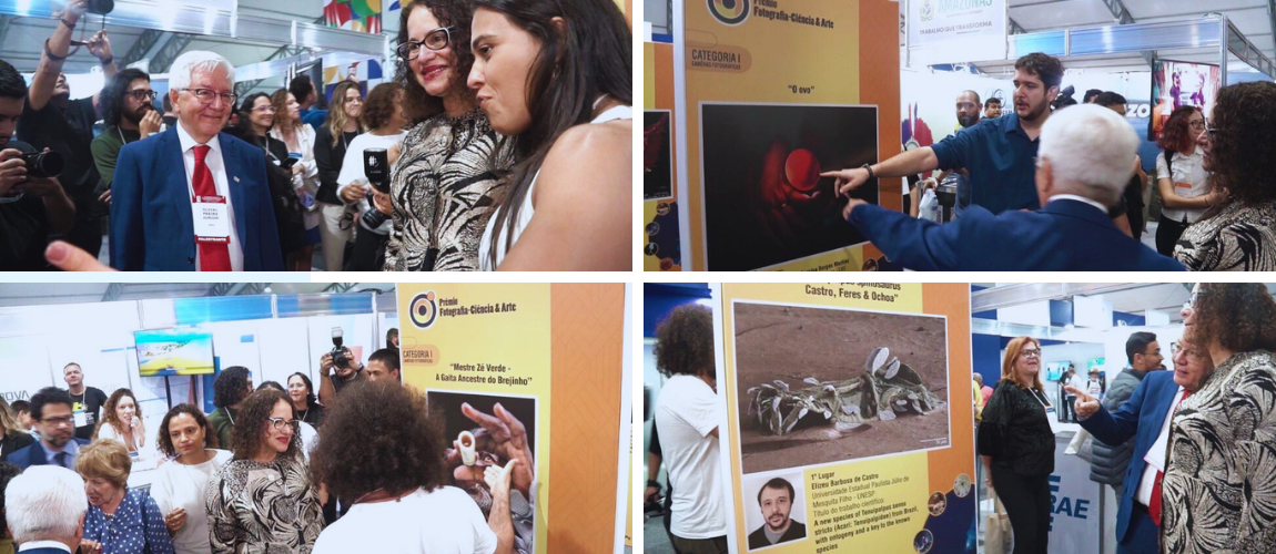 Foram esses detalhes que os próprios “fotógrafos” apresentaram para a ministra do MICT, Luciana Santos. Ela chegou ao estande do Ministério, na SBPC, após o grupo deixar a Roda de Conversa. Os jovens a encontraram, então, no espaço onde o CNPq montou a Exposição com as fotos vencedoras do Prêmio Fotografia Arte & Ciência. Quatro dos agraciados que puderam estar presentes percorreram os corredores ao lado da ministra e do presidente substituto do Conselho, Olival Freire Junior, que os apresentou à Luciana Santos.