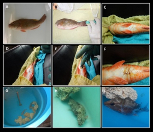 Durante o estudo, que teve aprovação na Comissão de Ética no Uso Animal (CEUA) da Universidade Federal de Pernambuco (UFPE) e foi licenciado pelo Instituto Chico Mendes de Conservação da Biodiversidade (ICMBio), os peixes foram marcados internamente com transmissores que emitem um sinal acústico único para cada indivíduo. Nessa fase do trabalho, os animais eram coletados nos recifes de corais e transferidos para o Centro Nacional de Pesquisa e Conservação da Biodiversidade Marinha do Nordeste (Cepene-ICMBio), com sede em Tamandaré. No laboratório, uma vez anestesiados, ocorria a inserção cirúrgica do transmissor acústico. Após um período de recuperação, eram devolvidos ao mar, exatamente nos mesmos locais onde haviam sido capturados. Desse modo, de dezembro de 2016 a outubro de 2017, vinte peixes-papagaio e nove baúnas foram monitorados por dezessete receptores dentro de uma extensão de um quilômetro quadrado.