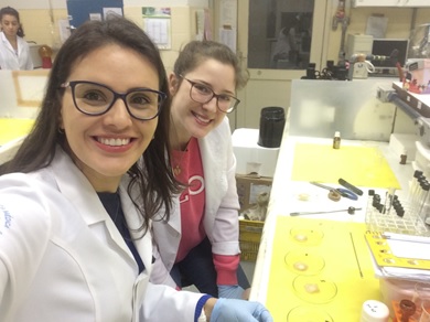 A pesquisadora Luiza no laboratório onde realiza seus experimentos. Foto: Arquivo Pessoal
