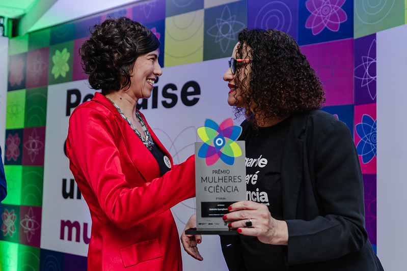 - A agraciada Gabriela Lotta recebe premiação da ministra Luciana Santos. (Foto: Luara Baggi/ Ascom MCTI)