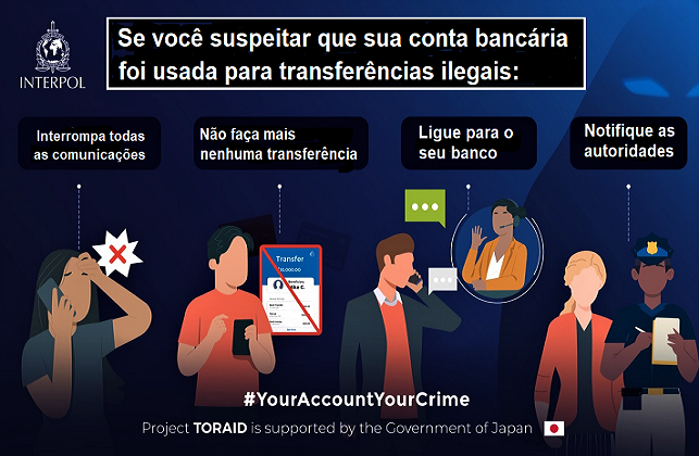 Esta campanha foi desenvolvida como parte do Projeto Toraid, da Interpol, que visa fortalecer a segurança e a proteção globais, aprimorando as capacidades de aplicação da lei para abordar um amplo espectro de crimes financeiros. O programa é financiado pelo governo do Japão.