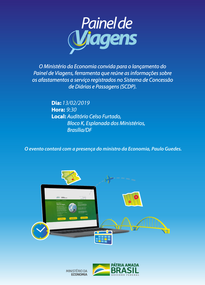 Notícias Lançamento do Painel de Viagens Compartilhe: Compartilhe por Facebook Compartilhe por Twitter Compartilhe por LinkedIn Compartilhe por WhatsApp link para Copiar para área de transferência Publicado em 12/02/2019 11h22 Ações do documento RSS