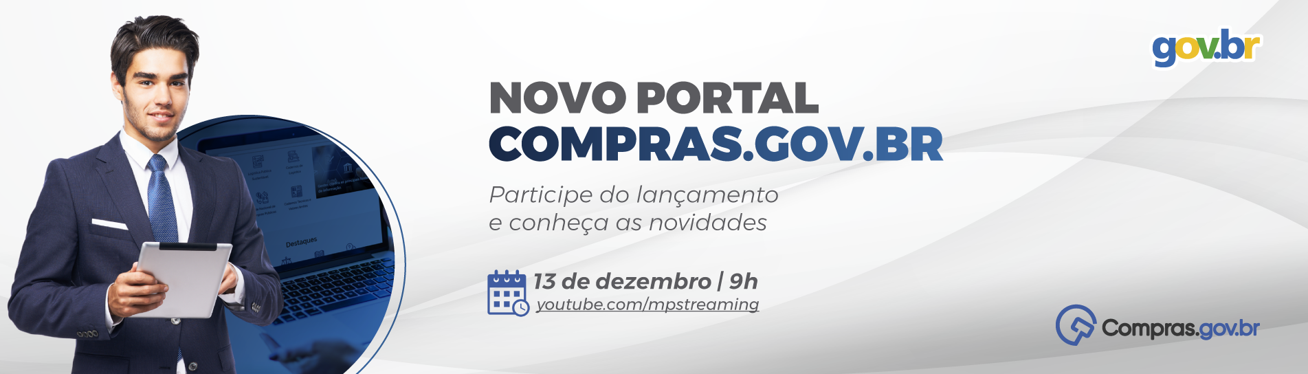 Na segunda feira (13/12) às 9 horas, a Secretaria de Gestão do Ministério da Economia realizará o webinar sobre o novo Portal Compras.gov.br.