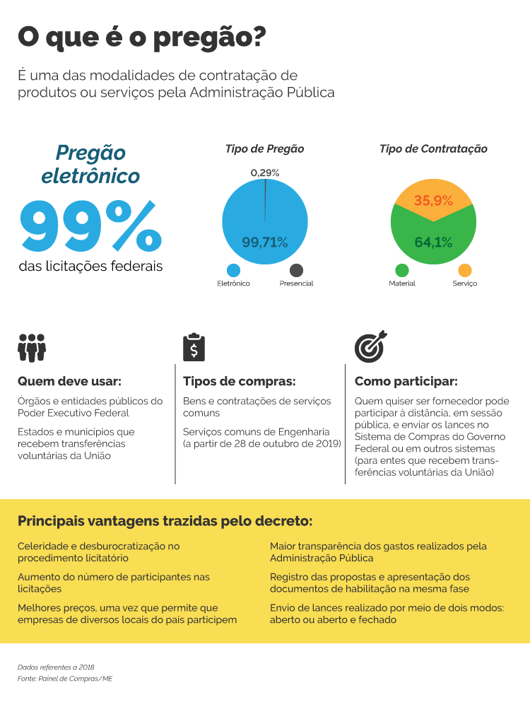“O pregão eletrônico representa mais de 90% das licitações realizadas pelo governo federal. O decreto potencializa os ganhos nos processos de compras, desestimula conluios, dinamiza a disputa, gerando economia de tempo e de recursos públicos para administração federal”, afirma o secretário de Gestão do Ministério da Economia, Cristiano Heckert.