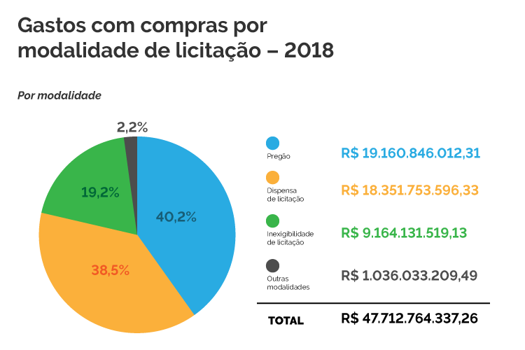 O pregão na modalidade eletrônica foi utilizado pelo governo federal em 99,71% das licitações realizadas no ano passado. Do valor total das compras realizadas naquele ano, R$ 47,7 bilhões, as aquisições realizadas via pregão, presencial e eletrônico, corresponderam a R$ 19,1 bilhões, representando 40,16% das aquisições realizadas por esta modalidade de licitação.