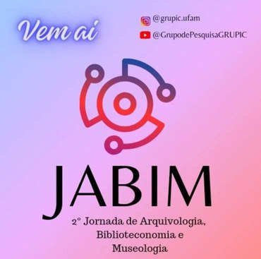 A 2ª edição da JORNADA DE ARQUIVOLOGIA, BIBLIOTECONOMIA E MUSEOLOGIA (JABIM), será realizada de forma online e gratuita, que acontecerá nos dias 23, 24, 25 e 26 de janeiro de 2024, sob a organização do Grupo de Pesquisa em Informação e Comunicação (GRUPIC), com o apoio da Faculdade de Informação e Comunicação da Universidade Federal do Amazonas (FIC/UFAM), trazendo nesta edição o tema: “Interculturalidade em Arquivos, Bibliotecas e Museus”.