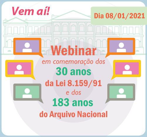 No dia 8 de janeiro de 2021, o Arquivo Nacional e o Conselho Nacional de Arquivos realizarão, conjuntamente, um evento em comemoração aos 30 anos da Lei de Arquivos (8.159/91), e aos 183 anos do Arquivo Nacional. Será transmitido a partir da página do AN no Facebook.