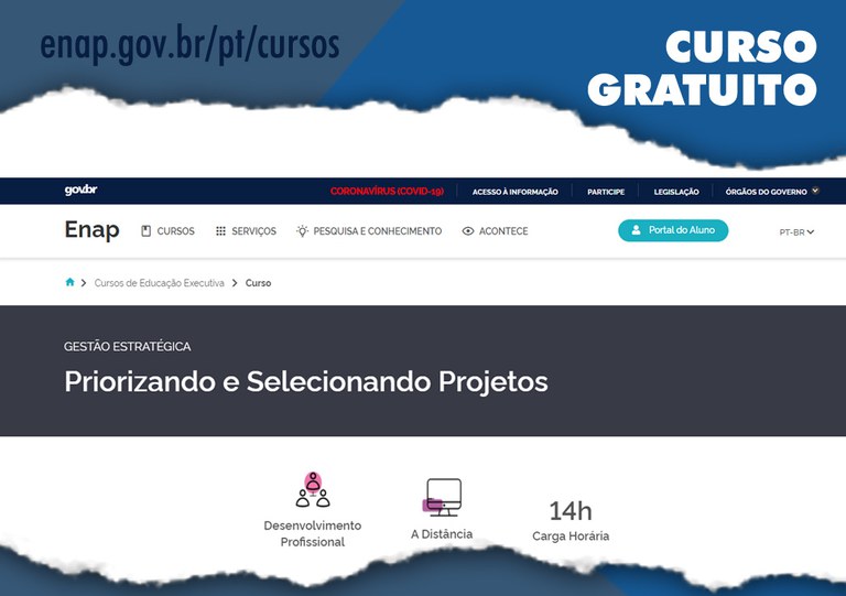A ENAP disponibilizou em seu portal o curso "Priorizando e selecionando projetos". O curso tem carga horária de 14h, é online e gratuito, objetivando que o aluno consiga conectar seus projetos ao plano estratégico de modo inteligente e ajudar sua organização a ir mais longe.