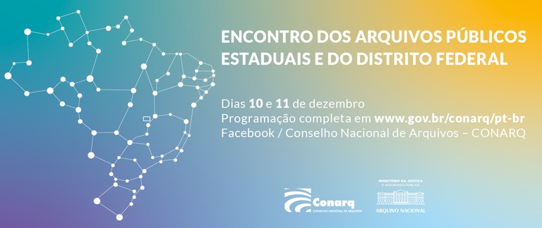 O Conselho Nacional de Arquivos promoverá nos dias 10 e 11 de dezembro de 2020 o Encontro dos Arquivos Públicos Estaduais e do DF. Será um evento on-line para continuarmos com as medidas de contenção da propagação do coronavírus!