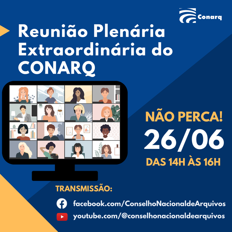 O Conselho Nacional de Arquivos (Conarq) realiza, na próxima quarta-feira (26/06), reunião plenária extraordinária.