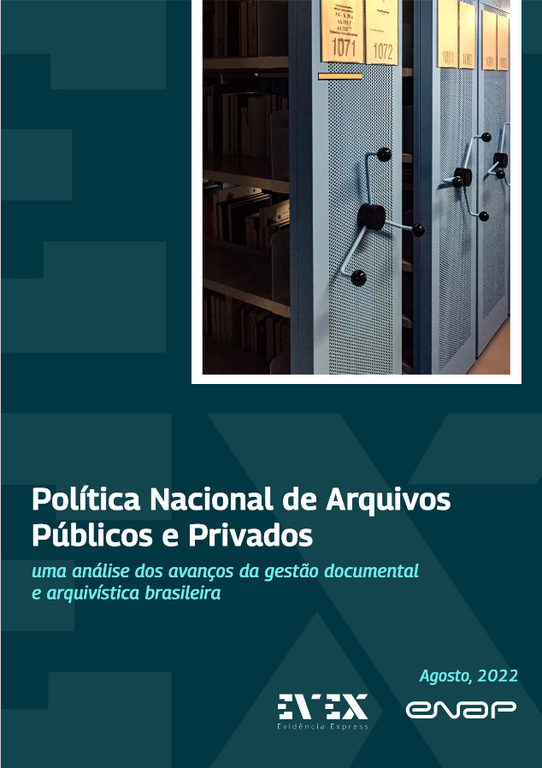 No escopo da parceria entre a Fundação Escola Nacional de Administração Pública e o Arquivo Nacional para a avaliação ex post da Política Nacional de Arquivos Públicos e Privados foi produzido o relatório Evidência Express (EvEx) intitulado "Política Nacional de Arquivos Públicos e Privados: uma análise dos avanços da gestão documental e arquivística brasileira".