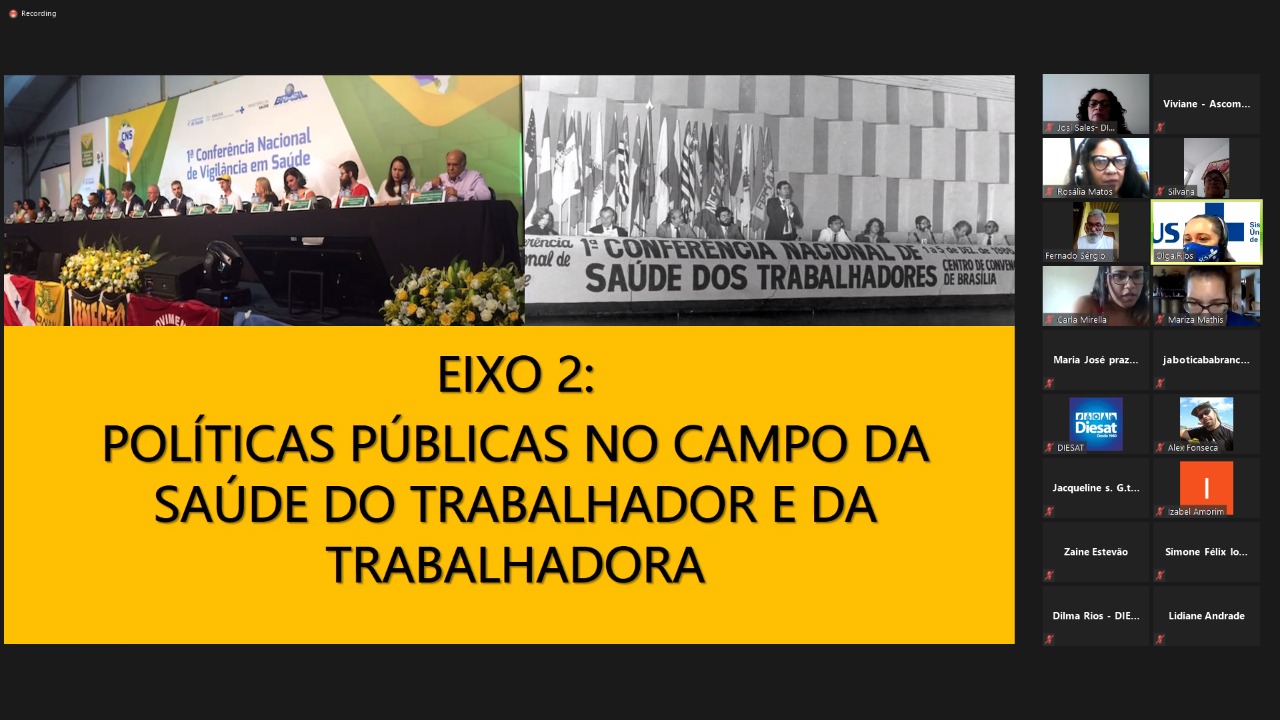 A atividade virtual contou com a participação de trabalhadores do Sistema Único de Saúde (SUS), representantes de sindicatos e integrantes das Comissões Intersetoriais de Saúde dos Trabalhadores e das Trabalhadoras (Cistt) municipais e estaduais e dos Centros de Referência em Saúde do Trabalhador (Cerest).