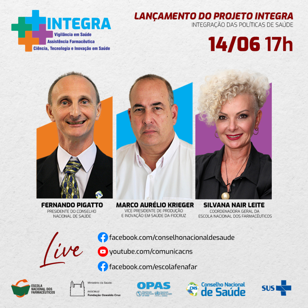 Com o objetivo de formar uma rede de de lideranças brasileiras, que participarão de um ciclo de atividades online e seminários, o “Projeto Integra – articular políticas públicas para fortalecer o direito à Saúde”, será lançado dia 14 de junho, às 17 horas, em live transmitida no youtube e facebook do Conselho Nacional de Saúde (CNS); e também no facebook da Escola Nacional dos Farmacêuticos (ENF). Em discussão, as possibilidades de integração de políticas de saúde, em contexto de pandemia de Covid-19.