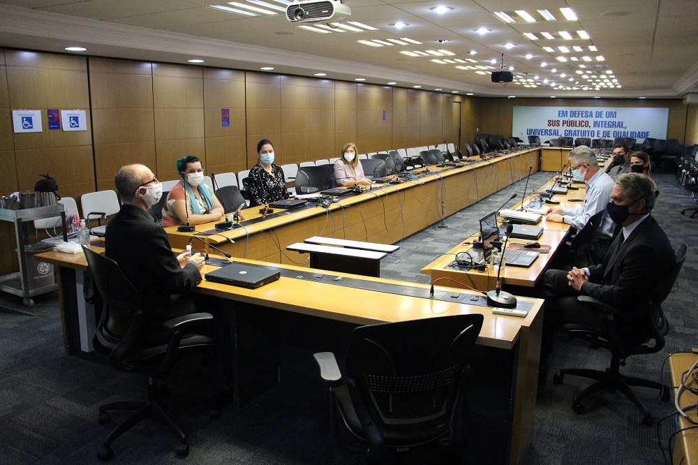 Representantes da Mesa Diretora do Conselho Nacional de Saúde (CNS) se reuniram nesta quarta (19/05), na sede do CNS, em Brasília, com o diretor Rogério Scarabel, da Agência Nacional de Saúde Suplementar (ANS). O objetivo da agenda, solicitada pela Agência, foi tratar da participação da ANS na Comissão Intersetorial de Saúde Suplementar (Ciss), do Conselho. Na ocasião, o CNS ressaltou o posicionamento contra a consulta pública inconstitucional do Ministério da Saúde sobre a Política Nacional de Saúde Suplementar (PNSS/Covid-19), que não abriu espaço para debate com o controle social, conforme rege a legislação.