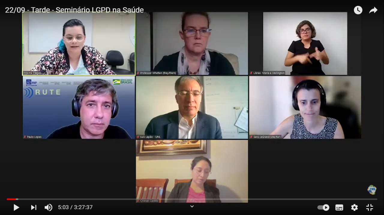 Regulamentações internacionais e governança foram os temas do Seminário LGPD na Saúde na tarde desta quarta-feira (22/09). A terceira mesa do Seminário tratou das aproximações entre a Lei Geral de Proteção de Dados (LGPD) e atos semelhantes da União Europeia e dos Estados Unidos, como o General Data Protection Regulation (GDPR) e o Health Isurance Portability and Accoutability Act of 1996 (HIPAA). O debate contou com tradução simultânea para o português, mediada pela conselheira do CNS Priscilla Viégas e por Paulo Lopes, representante do Comitê Gestor da Internet (CGI) e da Rede Universitária de Telemedicina.